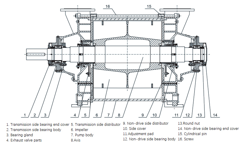 Estructura horizontal de una sola etapa y acción simple, sencilla y confiable, fácil de mantener. La estructura del cuerpo de la bomba con deflector permite que una sola bomba cumpla con los requisitos de dos condiciones de trabajo.