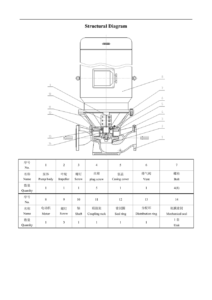 1. Las bombas para líquidos químicos corrosivos de esta serie son verticales, con las salidas de succión y descarga del mismo diámetro y sus ejes horizontales perpendiculares al eje vertical. El impulsor es de estructura cerrada. El soporte de la bomba descansa directamente sobre la placa inferior integrada en el cuerpo de la bomba.