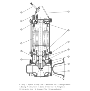 Diagrama estructural de la bomba sumergible pequeña para aguas residuales WQ/EC